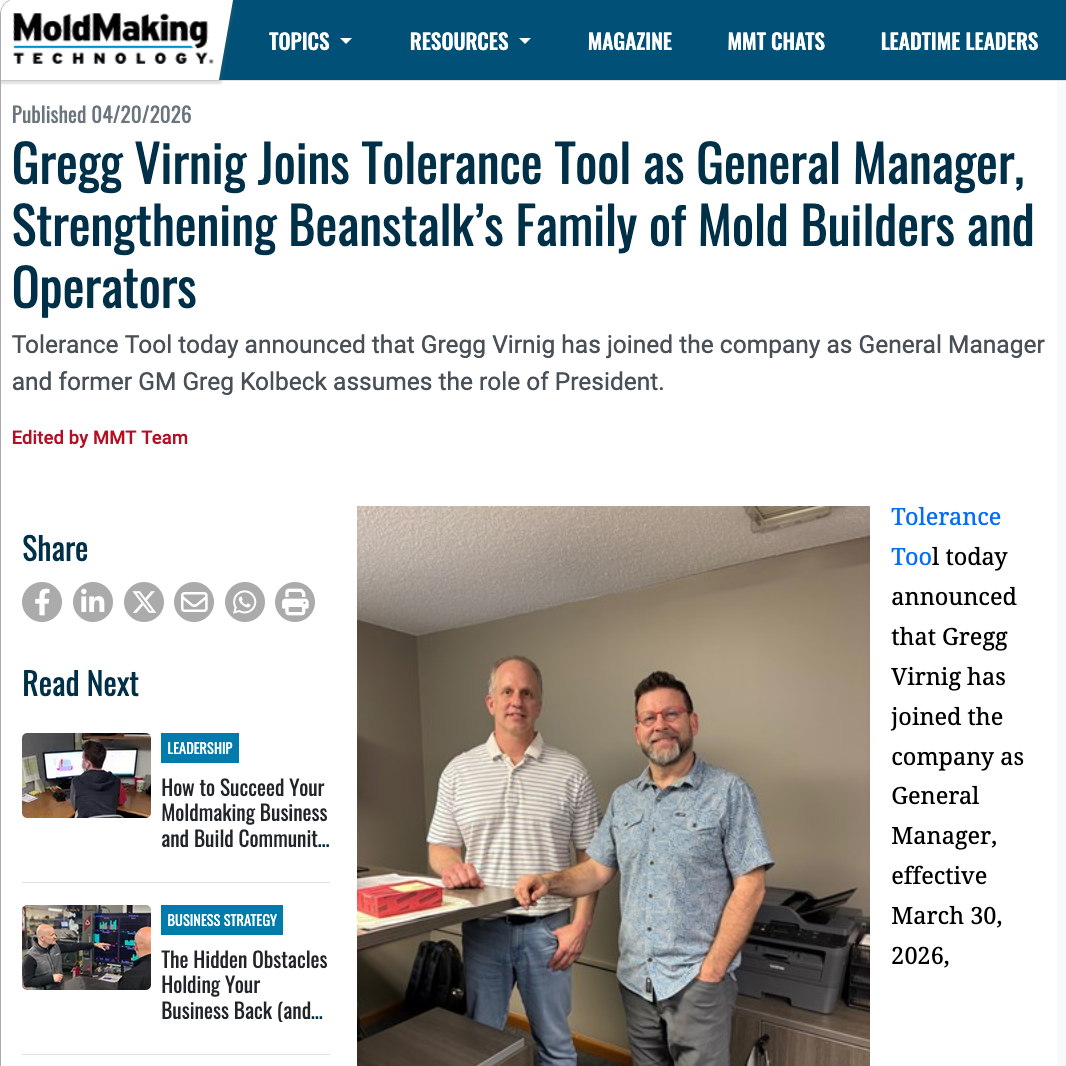 Check out coverage in MoldMaking Technology.